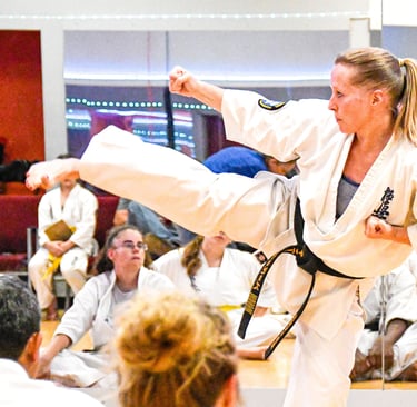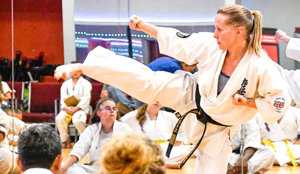 The 80-plus students who attended were treated to intense training in kata, with sessions also devoted to knockdown fighting by two of the top competitors to ever come out of the UK. As many know, Shihan Janine has won multiple kata championships, competing at the national level and in Europe, and was a finalist in the 1st World Kata Championships.