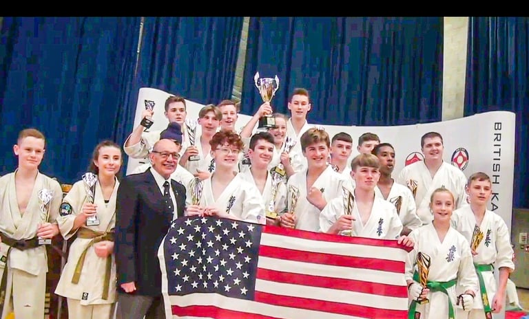 Osu! In October 2019, Team USA traveled to London to compete at the British Kyokushin Karate (BKK) Open, one of the most prestigious Kyokushin tournaments in Europe. This marked the first time in many years that a junior team from the United States competed at the British Open, and they made history in the Under-18 International Team Event, earning 1st Place over teams from England (2nd) and Wales (3rd).