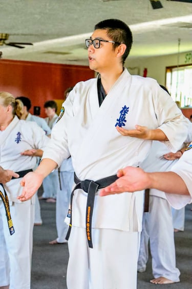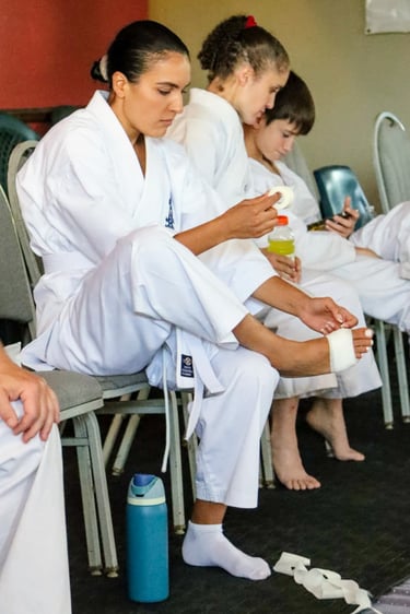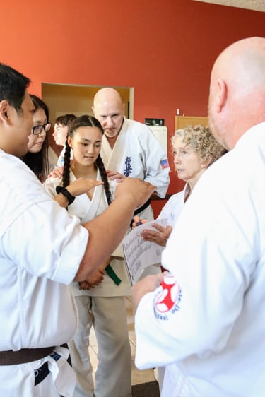 The USA-IFK continues to stress the importance of cultivating knowledgeable officials within our organization and had a dedicated session. The session was led by Shihan Jerry Poe (5th Dan) (Chairman of USA-IFKK Officials Committee), Shihan Greg Stokelin (6th Dan), and Senpai Rebecca Haskel (2nd Dan). The session included live demonstration bouts judged by three members of the USA-IFK Fight Team: Senpai Lyric Schenker and Senpai Caitlyn Anderson working corners, and Senpai Mason Salvestrini serving as center referee. All three are experienced national and international competitors.