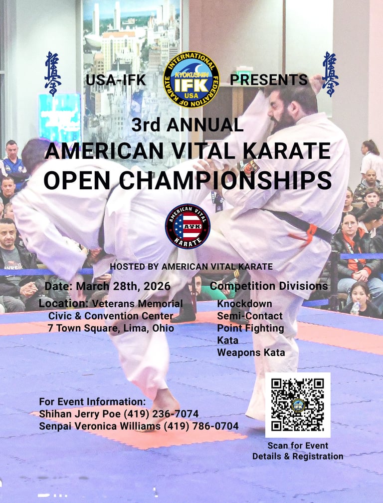 The 3rd Annual American Vital Karate Open Championships will take place on March 28, 2026, in Lima, Ohio.